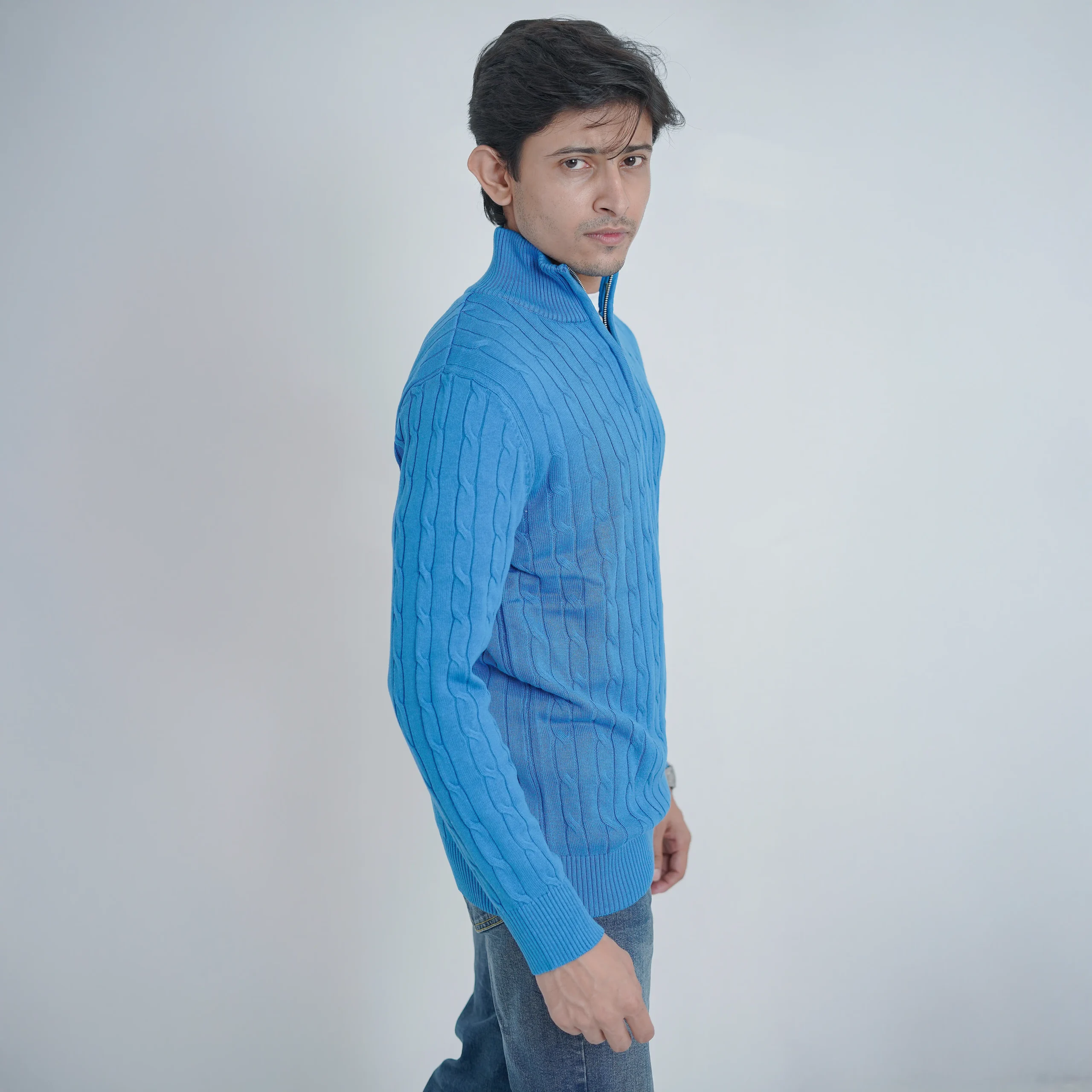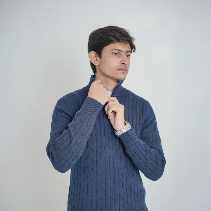 Be the first to review “Old money knit cable sweater with zipper (Sky Blue)”