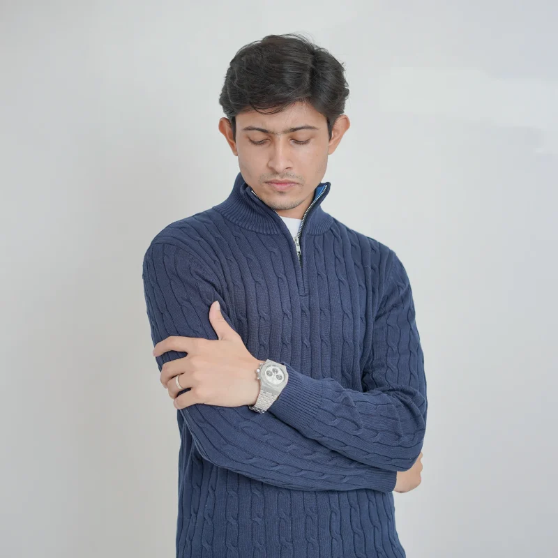 Old money knit cable sweater with zipper (Off-white) Original price was: 1,190৳ .Current price is: 890৳ .