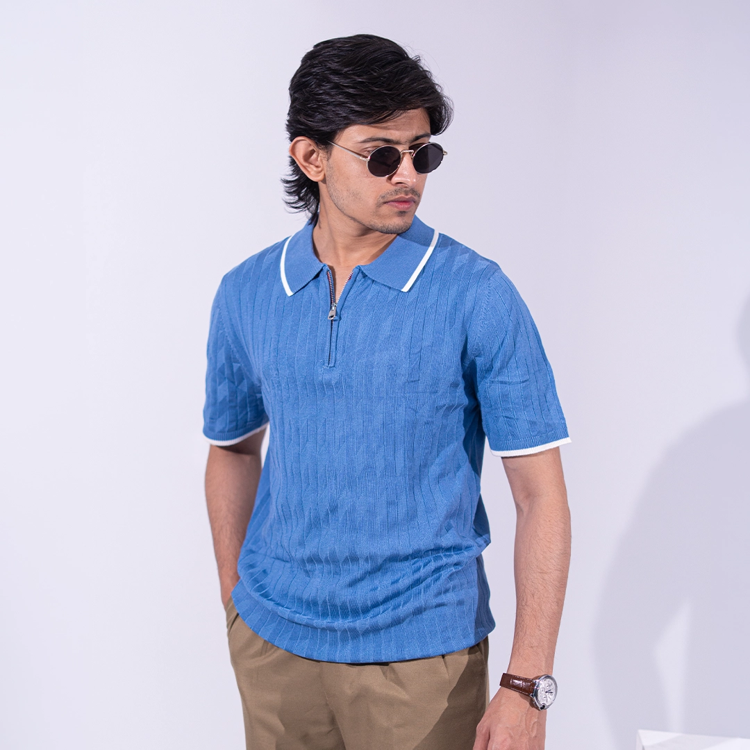 Premium Viscose Blend Zipper & Collar Polo Shirt – Soft (Steel Blue), Breathable & All-Season Comfort
